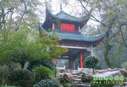 愛晚亭位于岳麓書院后青楓峽的小山上,八柱重檐,頂部覆蓋綠色琉璃瓦,攢尖寶頂,內(nèi)柱為紅色木柱,外柱為花崗石方柱,天花彩繪藻井,蔚為壯觀。清乾隆五十七年(公元一七九二年)山長羅典所建。原名“紅葉亭”,又名“愛楓亭”。后據(jù)唐代詩人杜牧《山行》而改名為愛晚亭,取“停車坐愛楓林晚,霜葉紅于二月花”之詩意。