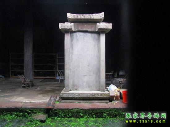 土司德政碑立于司城衙署遺址左側(cè),由青石雕鑿而成。碑高2.74米,寬1.2米,腹背刻字,上有石帽蓋頂,旁扶石柱。此碑是清康熙五十二年(公元1713年)2月永順土官為永順等處宣慰使彭泓海歌功頌德而建。碑頭篆書“甘棠遺愛”四字。正碑兩側(cè)有一對聯(lián):“一片石銘恩德厚,千秋歌頌山河新”。正中刻有“欽命世鎮(zhèn)湖廣永順等處軍民宣慰使司宣慰使都督府致仕恩爵主爺中涵德政碑”。碑文記述了所轄58旗、380洞軍民懷念彭泓海之德政以及“嘗聞恩可結(jié)民心,不能使民心之不忘記,功可顯當(dāng)時(shí),不能使后世之取法”的土司統(tǒng)治信條。