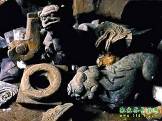 土司古墓群多集中于司城紫金山、雅草坪、帕桶湖三個(gè)地方,其中以紫金山最多。據(jù)勘察,紫金山一處共有土司王及其貴族墳?zāi)?09座。彭福石沖以后的土司、土官及其眷屬,都分別埋葬在這里。古墓的規(guī)模大小,視其官爵而定。從已挖開的30多座古墓來看,基本形式是用土磚拱成半圓形,墓前有石人石馬,四周筑有圍墻,進(jìn)出必經(jīng)鐵門。墓室四壁上刻有精美的花草圖案和龍鳳圖案。棺材系楠木、梓木做成,用土漆漆成烏黑色,并用鐵鉤懸掛在石室之內(nèi)。隨葬器物也極為豐富,有金花、金譬、發(fā)插、耳環(huán)、蓮蓬等金銀飾物,還有各種玉器等。明代一些名土司彭顯英、彭冀南等人的墳?zāi)怪两裆斜4嫱旰?。古墓群現(xiàn)為湖南省重點(diǎn)文物保護(hù)單位。