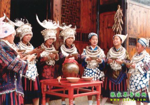 土家人叫槽門,是居住在一個院落里的土家人公用的門。每逢喜慶的日子,都要在這里舉行攔門儀式,以迎接高貴和尊敬的客人。按土家風俗,進槽門要對歌喝酒,如果客人對歌能勝,就輕松入門,如客人對歌輸了就得喝攔門酒后入門。喝攔門酒已成為一種迎賓的方式。