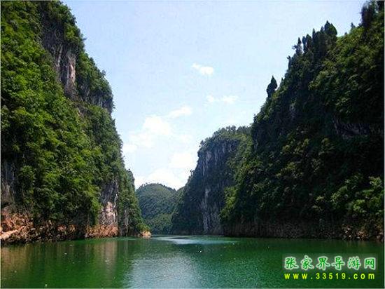 茅巖河漂流段是大庸城西20公里青魚潭往北一段。茅巖河雖灘險流急,但河床坡度小,水位落差不大;險灘較短(一般僅20余米長),而險灘與險灘間的距離卻較長(一般均逾千米),故浪濤適中,漂流有驚無險。茅巖河主要景點有:血門溝、洞子坊、茅巖灘、夾兒溝、溫塘溫泉、麻陽古渡、茅巖河峽、水洞子瀑布等。沿河兩岸青山綠水、風光,故又稱“百里廊”。