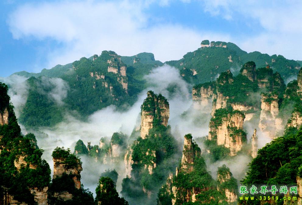 張家界,又名青巖山,面積一百三十平方公里,是中國第一個國家森林公園,它地處武陵山中。張家界地貌奇特,有石峰2000多座,形態(tài)各異,樹木茂盛,森林覆蓋率達88%,四周山地環(huán)抱,坡陡溝深,氣候暖濕,區(qū)內(nèi)景點眾多,尤以黃獅寨、砂刀溝、金鞭巖、金鞭溪等最為著名。有黃獅寨、金鞭溪、腰子寨、琵琶溪、砂刀溝、后花園、朝天觀七條主要旅游線。