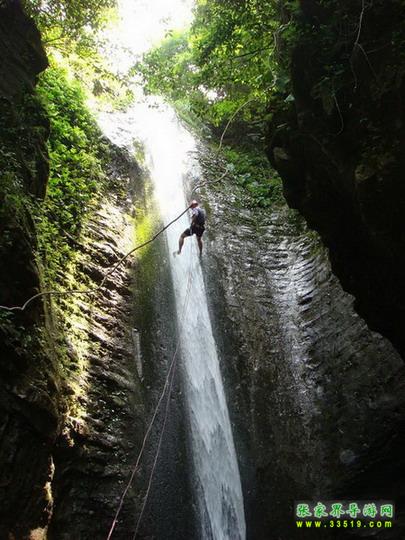 張家界大峽谷位于張家界市慈利縣三官寺鄉(xiāng),緊鄰世界自然遺產(chǎn)、世界地質(zhì)公園張家界武陵源風(fēng)景名勝區(qū),是一個(gè)新近開(kāi)發(fā)建設(shè)的旅游景區(qū)。相傳張家界大峽谷原來(lái)有兩個(gè)名字,一個(gè)叫做爛船峽,是因?yàn)閺奈覀兯幍奈恢蒙闲幸稽c(diǎn)五公里,就是神泉溪,整個(gè)大峽谷和南方紅旗渠的水流都來(lái)源于這里。傳說(shuō)以前從泉眼中涌出過(guò)很多爛了的船板,當(dāng)?shù)厝藗冇譄o(wú)法知曉爛船板從何而來(lái),所以這里得名“爛船峽”。這個(gè)名字來(lái)源,有些地老天荒,??菔癄€的意蘊(yùn)。另外一個(gè)名字叫做亂泉峽,是指峽谷中的兩面石壁,溪泉眾多,滿(mǎn)峽飛流。這個(gè)名稱(chēng)來(lái)源,突出了我們張家界大峽谷風(fēng)景區(qū)的特色,那就是峽谷中的飛瀑神泉比比皆是,一路游覽下來(lái),讓人目不暇接。我們今天的游覽行程是沿著面前的一線(xiàn)天絕壁拾級(jí)而下,然后順著溪流的流向一路前行,一直到達(dá)神泉湖碼頭。