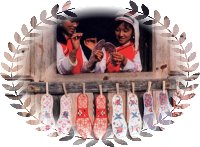 據(jù)史載,有關(guān)土家族的服飾宋代稱“溪布”、“峒布”、“土錦”等。后受漢族先進技術(shù)影響,土家人用自織自染的“土布”做成圍裙。到現(xiàn)代,土家服飾發(fā)生了巨大變化,但仍保留了許多傳統(tǒng)樣式。土家族人始終著以琵琶襟為特征的滿襟衣。托肩矮領(lǐng)大袖口,滾花邊。男捆腰帶,女套繡花圍裙。頭上均包青布帕或絲帕,男帕左方垂一節(jié)過耳,婦女全包頭。未婚閨女留長發(fā)扎辮,用紅頭繩扎上下兩端,額前前留“劉海”。已婚婦女挽上發(fā)管,別簪,插銀首飾。褲子多為青、藍色、上結(jié)白布褲腰,褲腳短且大。青壯年男子打綁腿,女褲以對襯色布加邊,上綴三條均等的梅花條,腳上穿青布瓦鞋,包白色裹腳布。若遇喜慶節(jié)日或走親訪友,則另有一番梳妝打扮,如加佩牙簽、銀牌等。
