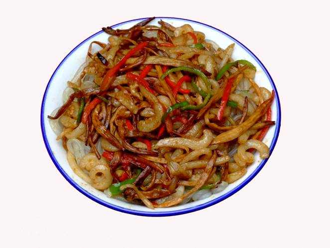 張家界草帽面》。 這個(gè)名字的由來是因?yàn)槔习宄D甏髦菝辟u面,臊子非常香,可以添加,面是他自己加工的據(jù)說是全手工的,老板人很古怪,每天只賣那么一點(diǎn),以前更古怪,只有星期1、3、5的晚上9點(diǎn)才有賣,想吃他家的草帽面居然還得跟他打電話問他是否心情好,出不出來賣面?預(yù)約了才不會撲空。但是就因?yàn)檫@點(diǎn)神秘,所以他家的面有些神話色彩。在汽站口百貨大樓東門對面的巷子口,一輛板上面掛了一頂草帽,那就是了,不過每天下午1點(diǎn)左右就沒了,要吃啊,嘿嘿,您趕早!能不能吃的上,得看您造化咯!