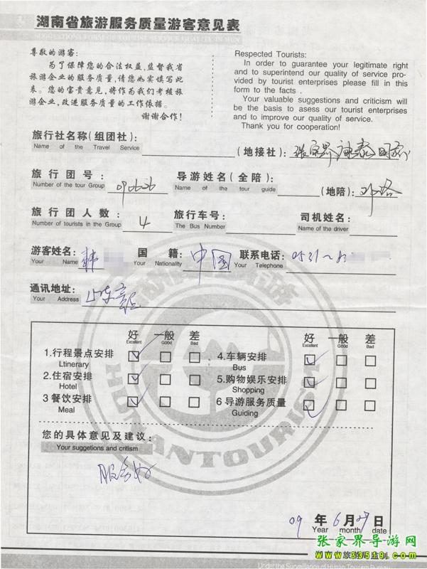 6月25日山東韓先生一行4人接待質(zhì)量反饋單: