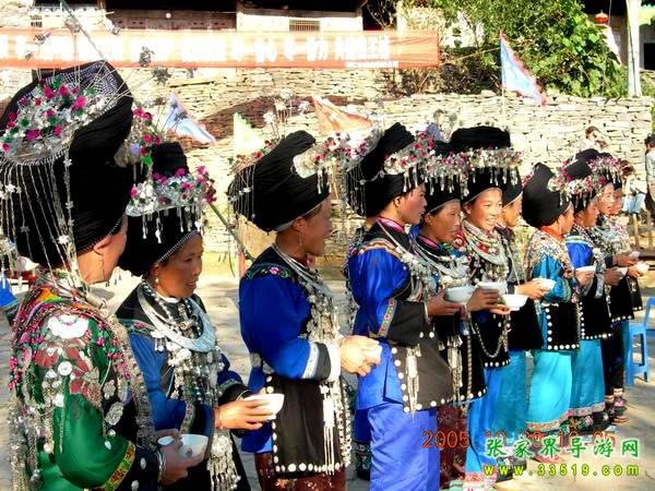 苗王城濃郁的苗族風(fēng)情:情歌、木葉歌、敬酒歌;神秘莫測的絕技上刀山、下火海、撈油鍋、鋼針穿喉、仙人合竹、秤桿提米等;驚險(xiǎn)絕倫的高空飛人、熱情奔放的四面花鼓舞,還有奇特的婚嫁習(xí)俗“打花貓”、“揪耳朵”、八人轉(zhuǎn)轉(zhuǎn)秋等等。這是一片神奇的土地、一個(gè)神秘的地方,她的每條巷道、每個(gè)門、每棵樹都是苗族厚重歷史的一頁,從這里開始,您會讀懂苗王城,同時(shí)也會感受到苗族文化的古樸、神奇、博大、精深……。