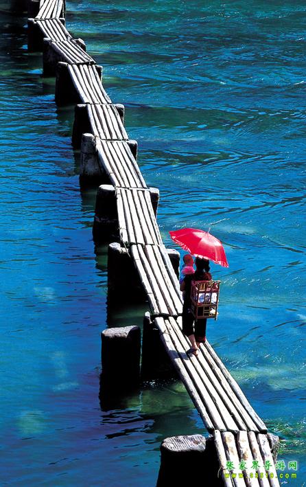 還有那鳳凰人在江邊用木板洗衣服時的情形也是難忘的。小住幾天,都會發(fā)現(xiàn)從一早到一晚都有當(dāng)?shù)氐木用裨阢吷舷匆路?,他們?nèi)巳硕寄靡豢焯刂颇景?,用來敲打衣服,特別在早上八、九點(diǎn)的時候,江兩岸的邊上、木橋的兩邊橋墩下,都蹲滿許多的人,當(dāng)然婦女、老人居多,在那“啪啪”的洗衣服,此起彼伏,甚有節(jié)奏。時而有游人用照相機(jī)對其拍照,可他們似乎也習(xí)以為常了,毫不理會,特別在傍晚還會有脫得精光的小孩在岸邊的洗衣人周圍玩水,奇怪的是,他們并不害羞,也不害怕游人的鏡頭和目光,我想大城市里的孩子就少了這份的無機(jī)心的單純了。在這里生活無疑自然舒適淳樸的,我想他們的生活習(xí)慣從來就是如此的,沒有因我們游客的到來而有太大該變。